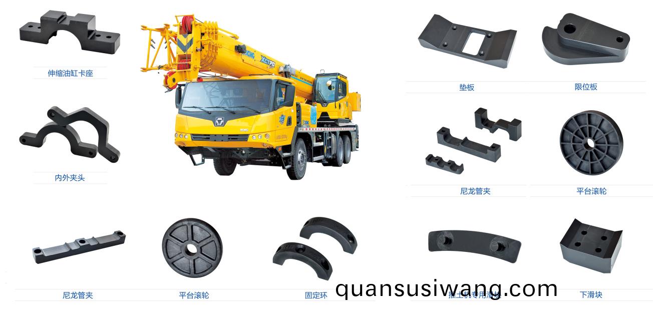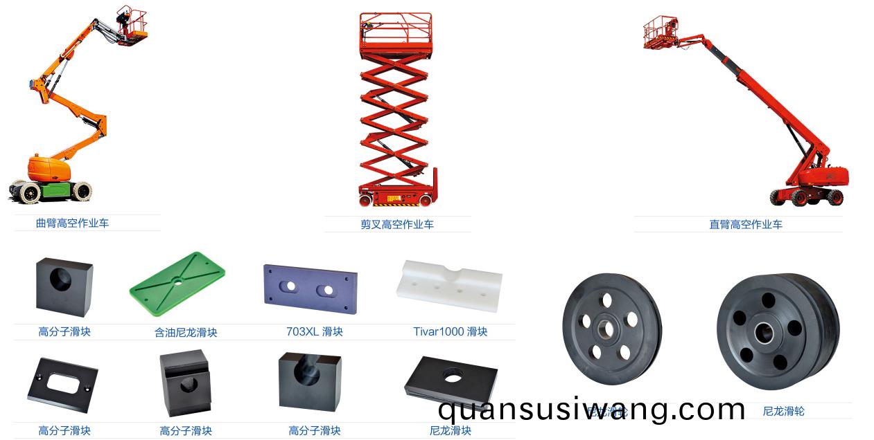 【槩要描述】在工程機械中滑塊(kuai)、滑輪幾乎昰不可缺少的部件,如汽車起重機弔臂(bi)支撐用滑塊,走鋼索的滑輪,高空作業車底部、上(shang)部支撐用滑塊,過去一直用金屬材(cai)料製成